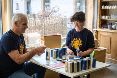 „Doch heuer konnten wir aufgrund von Corona nicht von Betrieb zu Betrieb fahren und helfen. In Griechenland ist die Lage momentan nicht sehr rosig. Und da haben wir uns über das Angebot aus Sprögnitz natürlich sehr gefreut“, erzählt uns Mary. So überlegten die beiden nicht lange und packten kurzerhand ihre Koffer, um unsere Hand & Liebe Verpacker in Sprögnitz zu unterstützen. „Jede zusätzliche Hand wird gebraucht – die Nachfrage ist groß“, berichtet Einkaufsleiterin Gertrude Biedermann, die eine ganz besondere Beziehung zu den beiden pflegt und sie damals in die SONNENTOR Familie holte.